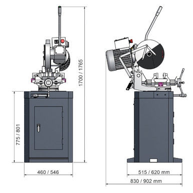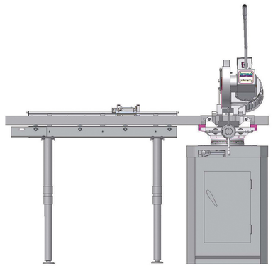 Sega circolare manuale per metallo, 235 Kg, 400 v, inclinabile completa di basamento e impianto di refrigerazione