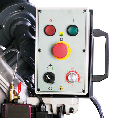 Sega a nastro 220 v+basamento, peso: 185 Kg, taglio-45ø/+60ø, avanzamento di taglio a regolazione continua completa di impianto di refrigerazione