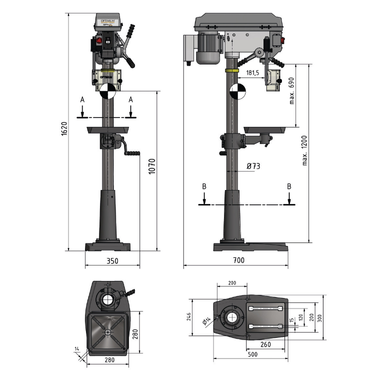Trapano a colonna trasmissione a cinghia trapezoidale, CM3, 12 velocit… da 200 a 2440 giri, 71 Kg, alimentazione 400 V