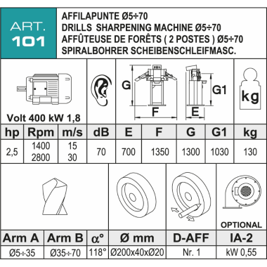 Affilatrice per punte è una macchina di robusta costruzione e di facilissimo utilizzo. la macchina può affilare punte dal Ø5 al Ø70mm.