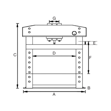 Pressa idraulica da banco con tavola regolabile in h su tre posizioni, pompa idraulica manuale, cilindro laterale scorrevole, 15 t, peso: 75,5 Kg