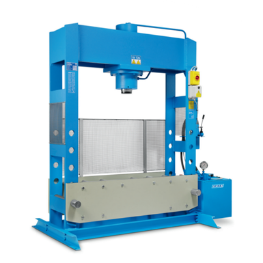 TRACCIATO TECNICO COSTRUTTIVO • Stelo del cilindro in acciaio speciale, trattato e cromato. • Centralina motorizzata a due velocità ad inserimento automatico. • Funzionamento tramite distributore a leva e pulsante sul quadro da azionare contemporaneamente. • Complete di pannelli protettivi posteriore e laterali in acciaio zincato. • Dotate di valvola di taratura per regolare la potenza in base alla lavorazione da eseguire. • Massima versatilità grazie al bancale ad altezza regolabile. • Sollevamento del bancale tramite apposito argano (P30/MR – 162/R – 163/R – 164/R). • Sollevamento del bancale tramite asta (164/RS – 204/R – 204/RE). • Manometro fornito di serie.