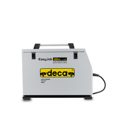 EasyJob 221XL LAB eroga 200 Amp in corrente continua (DC).La tensione di alimentazione è monofase a 230Volt. Il basso consumo energetico gli permette di essere utizzata anche su potenze installate ridotte oppure collegata ad un moto generatore (vedi tabella dati tecnici).