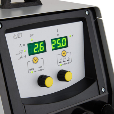 Il Controllo sinergico è estremanente efficace. Tutti i parametri principali di saldatura sono collegati e agiscono in maniera combinata.per ottenere una qualità di saldatura solitamente riscontrabile in prodotti più sofisticati.