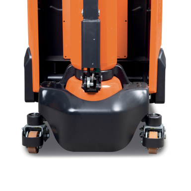 a bilanciere. La funzione a bassa velocità consente manovre lente con un timone verticale. Timone ergonomico per una praticità d'uso. Batteria agli ioni di litio potente garantisce un elevata disponibilità di utilizzo con cicli brevi di ricarica. Indicatore di carica della batteria sul timone. Batteria facile da rimuovere e inserire. Rulli di supporto laterali caricati a molla per un'elevata stabilità di guida e in curva.